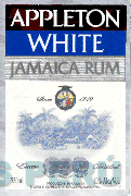 La etiqueta rectangular de borde plateado conteniendo la denominación APPLETON WHITE JAMAICA RUM escrita en letras características; en la parte central se aprecia un paisaje tropical y un escudo en la parte superior que contiene la figura de una mujer, el mar, un escudo, un velero y un león; en la parte inferior se aprecia la figura estilizada de tres monedas; diversas frases alusivas al producto, todo en la combinación de colores plateado, gris, amarillo, rojo, azul, blanco y negro; conforme al modelo adjunto
