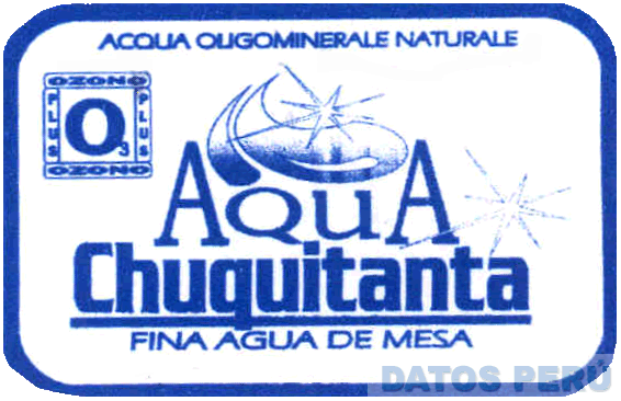 El logotipo conformado por la denominación AQUA CHUQUITANTA escrita en letras características; en la parte superior se aprecian dos gotas de agua en forma estilizada y sobre esta se observa una estrella, de la misma forma al lado derecho; y palabras alusivas al producto; sin reivindicar colores; conforme al modelo adjunto