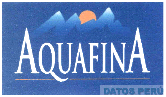 EL LOGOTIPO COMPUESTO POR LA DENOMINACION AQUAFINA ESCRITA EN LETRAS CARACTERISTICAS DE COLOR BLANCO CUYAS LETRAS A EN AMBOS COSTADOS SON DE MAYOR TAMAÑO A LAS DEMAS, EN LA PARTE SUPERIOR SE APRECIA LA FIGURA DE UNAS MONTAÑAS DE TONO CELESTE CON EL SOL DE COLOR ANARANJADO, TODO SOBRE UN FONDO DE COLOR AZUL; CONFORME AL MODELO ADJUNTO
