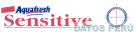 La etiqueta que contiene la denominación AQUAFRESH SENSITIVE en la combinación de colores azul, verde, celeste, rojo y blanco, conforme al modelo adjunto