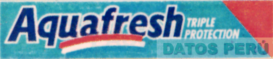 La denominación AQUAFRESH TRIPLE PROTECTION y diseño, en la combinación de colores azul, celeste, verde, rojo y blanco, conforme al modelo adjunto
