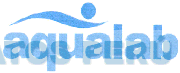 El logotipo conformado por la denominación AQUALAB escrita en letras características y sobre ésta, la figura estilizada de un nadador; todo en color celeste; conforme al modelo adjunto