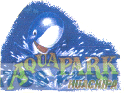 El logotipo conformado por la denominación AQUAPARK HUACHIPA escrita en letras características sobrepuesta a la representación caricaturizada de una ballena saltando sobre el agua y salpicada de gotas de agua; todo en los colores azul, celeste, verde en distintas tonalidades, blanco, rojo y anaranjado; conforme al modelo adjunto
