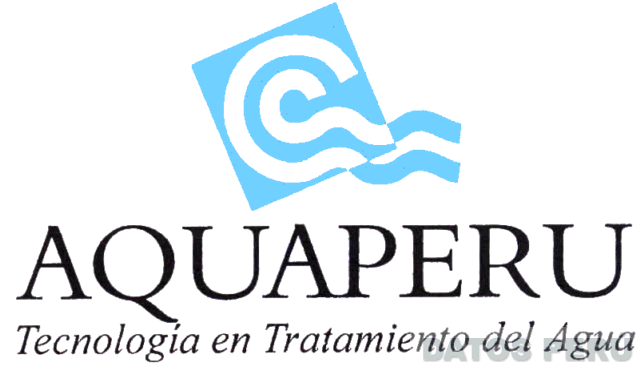 El logotipo conformado por la denominación AQUAPERU escrita en letras características con una figura geométrica constituida por un rombo con líneas ondulantes al interior y al exterior, todo en color celeste y negro; conforme al modelo adjunto