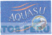 La denominación AQUASU NATURAL AGUA PURIFICADA y logotipo (se reivindica colores), conforme al modelo adjunto.