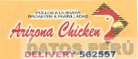 El logotipo conformado por la denominación ARIZONA CHICKEN escrita en letras características, acompañada en el lado derecho de la representación estilizada de la cabeza de un pollo sobre un conjunto de líneas horizontales, y debajo la denominación DELIVERY escrita en letras características (sin reivindicar) y la combinación de números 562557, todo en los colores amarillo, rojo, negro y blanco; conforme al modelo adjunto