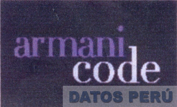 El logotipo conformado por la denominación ARMANI CODE escrita en letras características en colores morado y blanco, sobre una figura rectangular de fondo color negro y borde gris; conforme al modelo adjunto