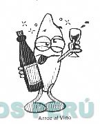 El logotipo conformado por la figura caricaturizada de un grano de arroz sosteniendo una botella de vino y una copa de vino en cada mano, en la parte inferior se aprecia la denominación ARROZ AL VINO (sin reivindicar) escrita en letras características, todo en los colores gris, plomo, negro y blanco; conforme al modelo adjunto