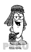 El logotipo conformado por la figura caricaturizada de un grano de arroz con turbante y sosteniendo la figura estilizada de un galón, en la parte inferior se aprecia la denominación ARROZ ARABE (sin reivindicar) escrita en letras características, todo en los colores gris, plomo, negro y blanco; conforme al modelo adjunto