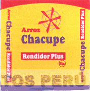La etiqueta conformada por la denominación ARROZ CHACUPE escrita en letras características, denominación que se repite en ambos lados laterales y frases alusivas al producto (sin reivindicar), en la parte superior la figura estilizada de un molino, en los colores anaranjado, amarillo, azul y blanco; conforme al modelo adjunto.