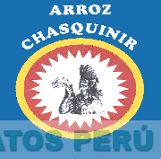 La denominación ARROZ CHASQUINIR escrita en letras características y el logotipo conformado por la representación estilizada de un chasqui sosteniendo tallos de arroz, encerrado en una figura ovalada dentada, todo dentro de una figura circular, en los colores rojo, amarillo, azul, blanco y plomo; conforme al modelo adjunto