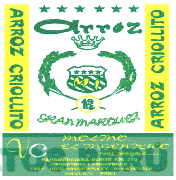 El logotipo conformado por la denominación GRAN MARQUEZ escrita en letras características, en la parte superior se aprecian seis estrellas alineadas, en la parte central las figuras estilizadas de dos espigas de arroz enmarcando un escudo que contiene cuatro estrellas alineadas y las letras M I, sobre ello la figura estilizada de una corona de cinco puntas, debajo el número 49 y las letras KG, en la parte inferior se aprecian las letras VC seguidas de la denominación MOLINO EL INGENIERO escrita en letras características, a los extremos derecho e izquierdo se aprecian la denominación ARROZ CRIOLLITO escrita en letras características, todo en la combinación de colores amarillo y verde; conforme al modelo adjunto