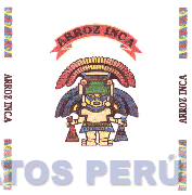 El logotipo conformado por la denominación ARROZ INCA escrita en letras características dentro de una cinta ondulante; dicha denominación también se repite en ambos lados del signo; asimismo, se aprecia la figura estilizada de un dios inca; en los colores rojo, amarillo, beige, azul, celeste, negro, verde y blanco; conforme al modelo adjunto