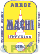 La denominación ARROZ MACHI SUPERIOR escrita en letras características, dentro de una figura rectangular, en el medio y debajo de la denominación MACHI una figura estilizada que representa un obelisco, y demás frases alusivas al producto, todo en los colores amarillo, azul y rojo; conforme al modelo adjunto