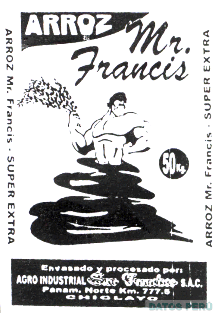 EL LOGOTIPO CONFORMADO POR LA DENOMINACION ARROZ MR. FRANCIS, LA FIGURA DE UN HOMBRE CON TORSO DESNUDO SOBRE UNAS FIGURAS ONDEADAS Y UN RAMO DE ESPIGAS DE ARROZ EN LA MANO Y LEYENDAS ALUSIVAS AL PRODUCTO, CONFORME AL MODELO ADJUNTO