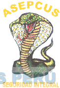 El logotipo conformado por las denominaciones ASEPCUS y SEGURIDAD INTEGRAL escrita en letras características y entre ellas la figura estilizada de una cobra; todo en los colores verde, amarillo, rojo y blanco; conforme al modelo adjunto