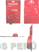 El empaque característico, sin reividicar su forma, que contiene la denominación ASEPTIL ROJO escrita en letras características en la parte superior tanto frontal como posterior; en la parte frontal se aprecia el envase del producto ASEPTIL ROJO y un círculo a la altura de la tapa; en el extremo inferior de las partes frontal y posterior se aprecia el logotipo de la letra S dentro de una figura irregular seguida de la denominación DIVISON SANITAS escrita en letras características y en la parte posterior se aprecia la figura estilizada de un hombre con dos círculos en el cuerpo; todo en los colores rojo y blanco; conforme al modelo adjunto