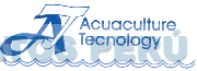 El logotipo conformado por la denominación ACUACULTURE TECNOLOGY escrita en letras características, al lado izquierdo se aprecian las letras A y T estilizadas y en la parte inferior se observan líneas onduladas dobles, todo en los colores azul y blanco; conforme al modelo adjunto