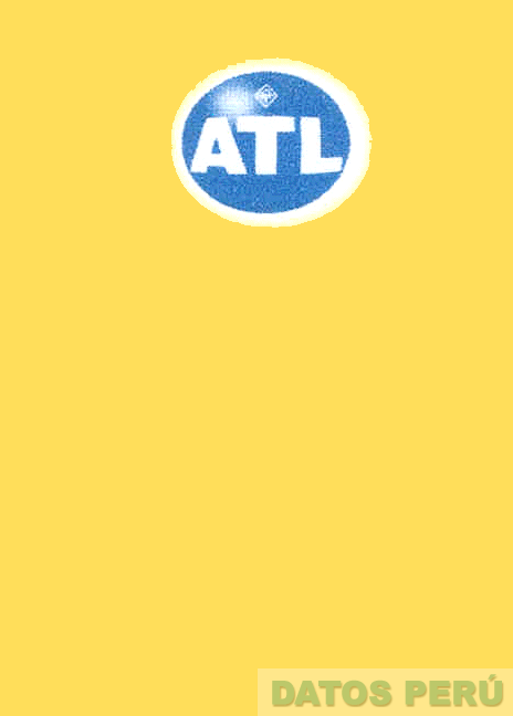 La etiqueta consistente en un rectángulo de orientación vertical de fondo color amarillo conteniendo en su parte superior y central el logotipo característico consistente en un círculo de fondo color azul y blanco, conteniendo la denominación ATL escrita en letras características de color blanco y un rombo de bordes color blanco de forma característica; conforme al modelo adjunto