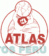 El logotipo conformado por la denominación ATLAS escrita en letras características, y detrás se aprecia la representación estilizada de un hombre cargando la representación estilizada del planeta tierra, todo dentro de un círculo en cuyo fondo se aprecian líneas horizontales, en color rojo; conforme al modelo adjunto