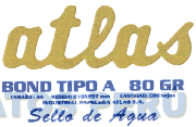 La denominación ATLAS escrita en letras características en color dorado, en la parte inferior frases alusivas al producto en color azul, todo sobre un fondo en color blanco; conforme al modelo adjunto