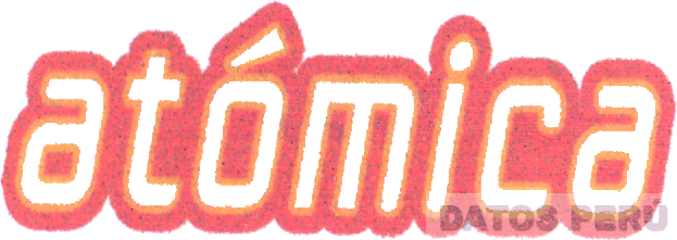 La denominación ATÓMICA escrita en letras características, en los colores rojo, anaranjado y blanco; conforme al modelo adjunto