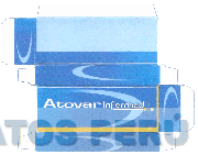 La caja empaque que contiene la denominación ATOVAR INFERMED escrita en letras características y la representación de figuras curvas una línea horizontal, otra vertical y la figura de dos recuadros, en los colores blanco, azul, celeste y amarillo; conforme al modelo adjunto