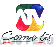 El logotipo conformado por la denominación ATV escrita en letras características y dentro de una figura cuadrangular, la misma que se encuentra dividida en cuatro partes; debajo se aprecia la frase COMO TÚ escrita en letras características y sobre una línea irregular; todo en los colores verde, azul, rojo, amarillo, blanco y negro; conforme al modelo adjunto
