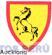 El logotipo conformado por la denominación AUCKLAND escrita en letras características y en la parte superior la representación estilizada de un caballo dentro de un escudo, todo en los colores rojo, amarillo y negro; conforme al modelo adjunto