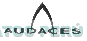La denominación AUDACES escrita en letras características negras, sobre ella la figura en forma de arco que traspasa las letras D y C; conforme al modelo adjunto