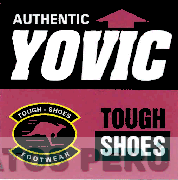 El diseño de un recuadro en cuya mitad superior se aprecia la denominación AUTHENTIC YOVIC escrita en letras características y encima de la palabra YOVIC se aprecia la figura de una flecha, en la mitad inferior se observa una figura irregular conteniendo la representación de un canguro estilizado acompañado de la frase TOUGH-SHOES FOOTWEAR, asimismo al lado derecho de dicha figura se aprecia la frase TOUGH SHOES, todo en la combinación de colores negro, guinda, amarillo y blanco; conforme al modelo adjunto