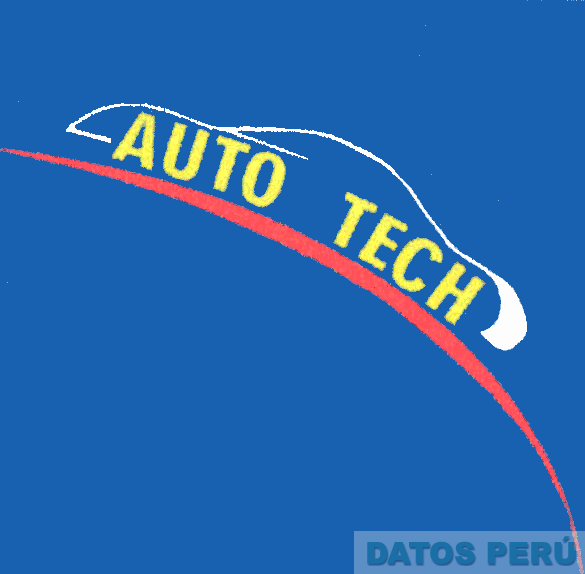 La denominación AUTO TECH escrita en letras características de color amarillo dentro de la silueta de un carro en color blanco y sobre una línea curva en diagonal de color rojo, todo sobre fondo azul; conforme al modelo adjunto