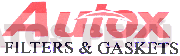 El logotipo conformado por la denominación AUTOX escrita en letras características de color rojo, donde sobre la letra T se aprecia una figura semiovalada, debajo se ubica la frase FILTERS & GASKETS escrita en letras características; conforme al modelo adjunto