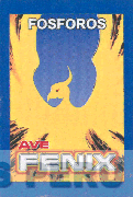 La figura estilizada de un ave en llamas, en la parte superior el término FÓSFOROS y en la parte inferior la denominación AVE FENIX escrita en letras características, todo dentro de una figura rectangular, en la combinación de colores amarillo, azul, rojo, anaranjado, marrón y blanco; conforme al modelo adjunto