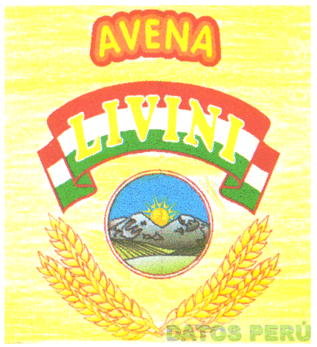 EL LOGOTIPO CONFORMADO POR LA DENOMINACION AVENA LIVINI ESCRITA EN LETRAS CARACTERISTICAS, LA DENOMINACION LIVINI DENTRO DE UNA BANDA RECTANGULAR DE COLORES VERDE, BLANCO Y ROJO, Y MAS ABAJO DENTRO DE UN CIRCULO UN CAMPO Y UN SOL BRILLANTE Y MAS ABAJO CUATRO RAMAS DE ESPIGAS DE AVENA, TODO EN FONDO AMARILLO, CONFORME AL MODELO ADJUNTO