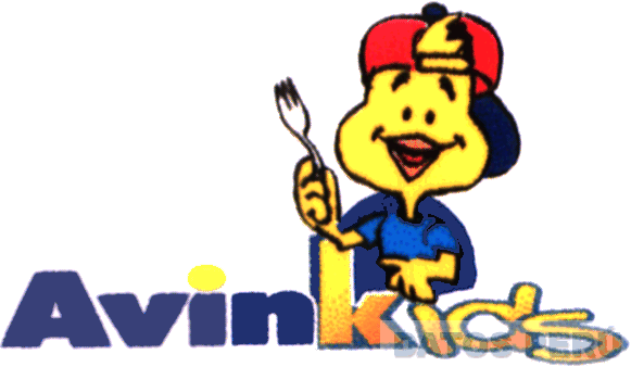 LA DENOMINACION AVINKIDS ESCRITA EN LETRAS CARACTERISTICAS Y FIGURA DE UN POLLO ESTILIZADO CON TENEDOR EN LA MANO, EN LOS COLORES AZUL, AMARILLO, ROJO, NEGRO, ANARANJADO Y CELESTE; CONFORME AL MODELO ADJUNTO,