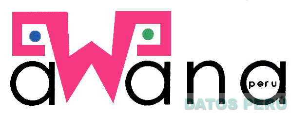 La denominación AWANA PERU escrita en letras características de color negro sobre fondo blanco, con el diseño estilizado de la letra W en color fucsia con unos pequeños puntos de color azul y verde, con la palabra PERU escrita en letras características dentro de la última letra A; conforme al modelo adjunto