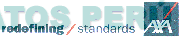 El logotipo conformado por la denominación REDEFINING STANDARDS escrita en letras características de color azul (pantone 287), en el medio de las dos denominaciones se aprecia una raya diagonal de color rojo (pantone 185), y al lado derecho una figura cuadrangular color azul (pantone 287) que contiene en su interior la denominación AXA escrita en letras características de color blanco y una línea diagonal de color rojo (pantone 185); conforme al modelo adjunto