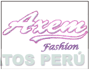 El logotipo conformado por la denominación AXEM FASHION escrita en letras características, todo en los colores rosado y morado; conforme al modelo adjunto