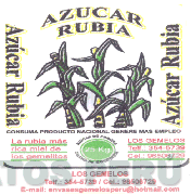 El logotipo conformado por tres siluetas de caña de azúcar, a los extremos la frase AZÚCAR RUBIA (sin reivindicar) así como en la parte superior; en la parte inferior frases alusivas al producto, todo en los colores verde, amarillo, rojo y negro; conforme al modelo adjunto
