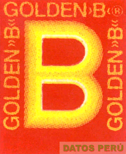 La etiqueta rectangular de fondo rojo, en cuyo centro se encuentra la letra B estilizada, en la parte superior y laterales se aprecian las palabras GOLDEN B escrita en letras características, en los colores rojo y amarillo; conforme al modelo