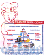 LA ETIQUETA CONSTITUIDA POR LA FIGURA DE UN OSITO CON GORRO DE COCINERO Y UNA LETRA "B", EL CUAL APARECE SUJETANDO UN RECTANGULO QUE CONTIENE UNA PIRAMIDE DIVIDIDA EN 6 SEGMENTOS, LOS CUALES CONTIENEN EL DISEÑO ESTILIZADO DE PRODUCTOS ALIMENTICIOS. EN LA PARTE SUPERIOR, UNA BANDEROLA CON LA FRASE "PIRAMIDE NUTRCIONAL". NO SE REIVINDICA LAS LEYENDAS O FRASES QUE APRECEN ALREDEDOR DE LA PIRAMIDE Y/O RECTANGULO