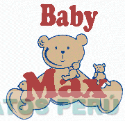 La denominación BABY MAX escrita en letras características, acompañada por las figuras estilizadas de osos, todo en los colores rojo, azul y marrón claro; conforme al modelo adjunto
