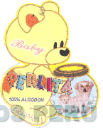 El logotipo conformado por la figura estilizada de un oso con la denominación BABY PERLITA IRENE escrita en letras características, y la figura de un frasco con dos cachorros, todo en la combinación de colores amarillo, marrón, rojo, celeste, anaranjado, morado, fucsia, verde, rosado, negro y blanco; conforme al modelo adjunto