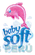 El logotipo conformado por la representación estilizada de un delfín, una figura irregular y la denominación BABY SOFT escrita en letras características, en los colores blanco, rosado y azul en diferentes tonalidades; conforme al modelo adjunto