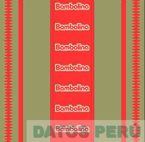 El logotipo conformado por una franja central conteniendo la denominación BAMBOLINA escrita en letras características, una línea recta y una línea irregular a cada lado de la envoltura, todo en la combinación de colores rojo, dorado y blanco; conforme al modelo adjunto