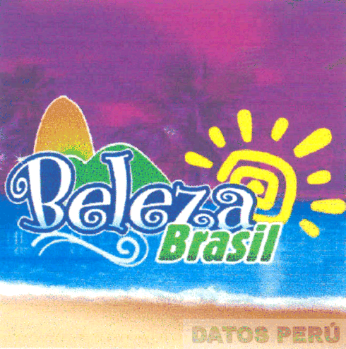 El logotipo conformado por la denominación BELEZA BRASIL escrita en letras características; asimismo se observa un sol característico; además se puede apreciar una imagen de una playa oscurecido con la representación del mar y olas, con palmeras y un cielo estilizado, y finalmente una colina y un monte; todo en los colores blanco, azul, amarillo, beige, celeste, violeta, anaranjado y distintas tonalidades de verde; conforme al modelo adjunto
