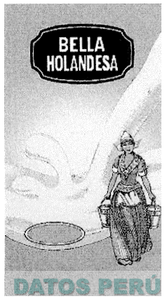 LA ETIQUETA RECTANGULAR QUE CONTIENE LA DENOMINACION BELLA HOLANDESA DENTRO DE UNA FIGURA IRREGULAR Y EL DISEÑO DE UNA MUJER VESTIDA CON TRAJE TIPICO DE HOLANDA, CARGANDO DOS RECIPIENTES CONTENIENDO LECHE, Y FONDO QUE PRESENTA UN CHORRO DE LECHE, CONFORME AL MODELO ADJUNTO,