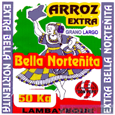 EL LOGOTIPO CONFORMADO POR LA DENOMINACION BELLA NORTEÑITA ESCRITA EN LETRAS CARACTERISTICAS, AL FONDO LA FIGURA DE UNA MUJER BAILANDO MARINERA, TODO ESTO SOBRE LA FIGURA ESTILIZADA DE UN ARBOL, A LOS COSTADOS LA FRASE EXTRA BELLA, NORTEÑITA ESCRITA EN LETRAS CARACTERISTICAS, TODO EN LA COMBINACION DE COLORES AZUL, AMARILLO, VERDE, ROJO Y NEGRO; CONFORME AL MODELO ADJUNTO
