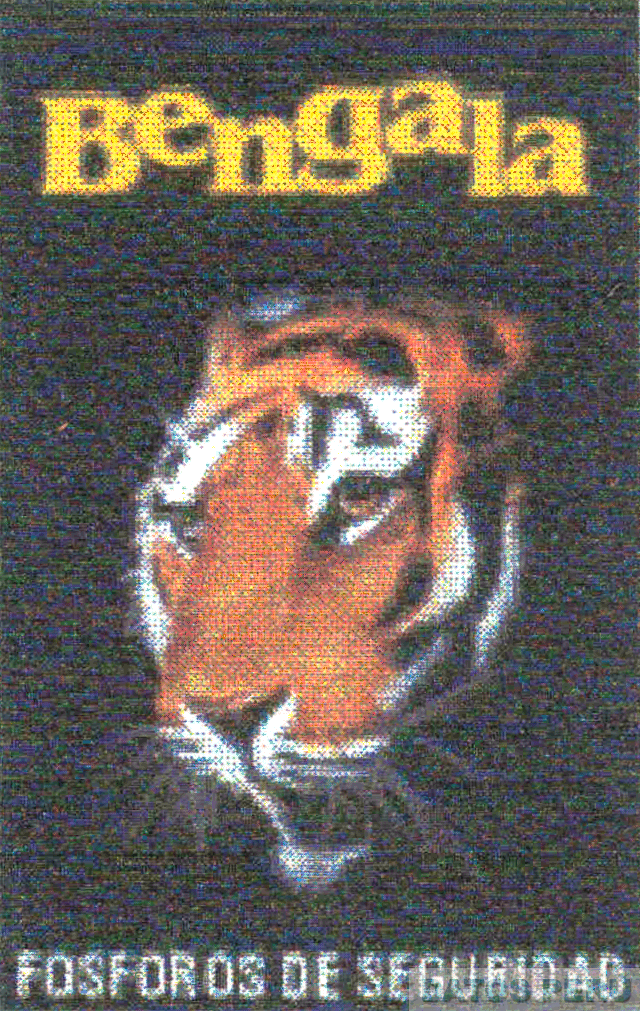 La etiqueta conteniendo la denominación BENGALA escrita en letras características, debajo se aprecia el diseño estilizado del rostro de un tigre y la denominación FOSFOROS DE SEGURIDAD, todo en los colores anaranjado, mostaza, blanco y negro; conforme al modelo adjunto